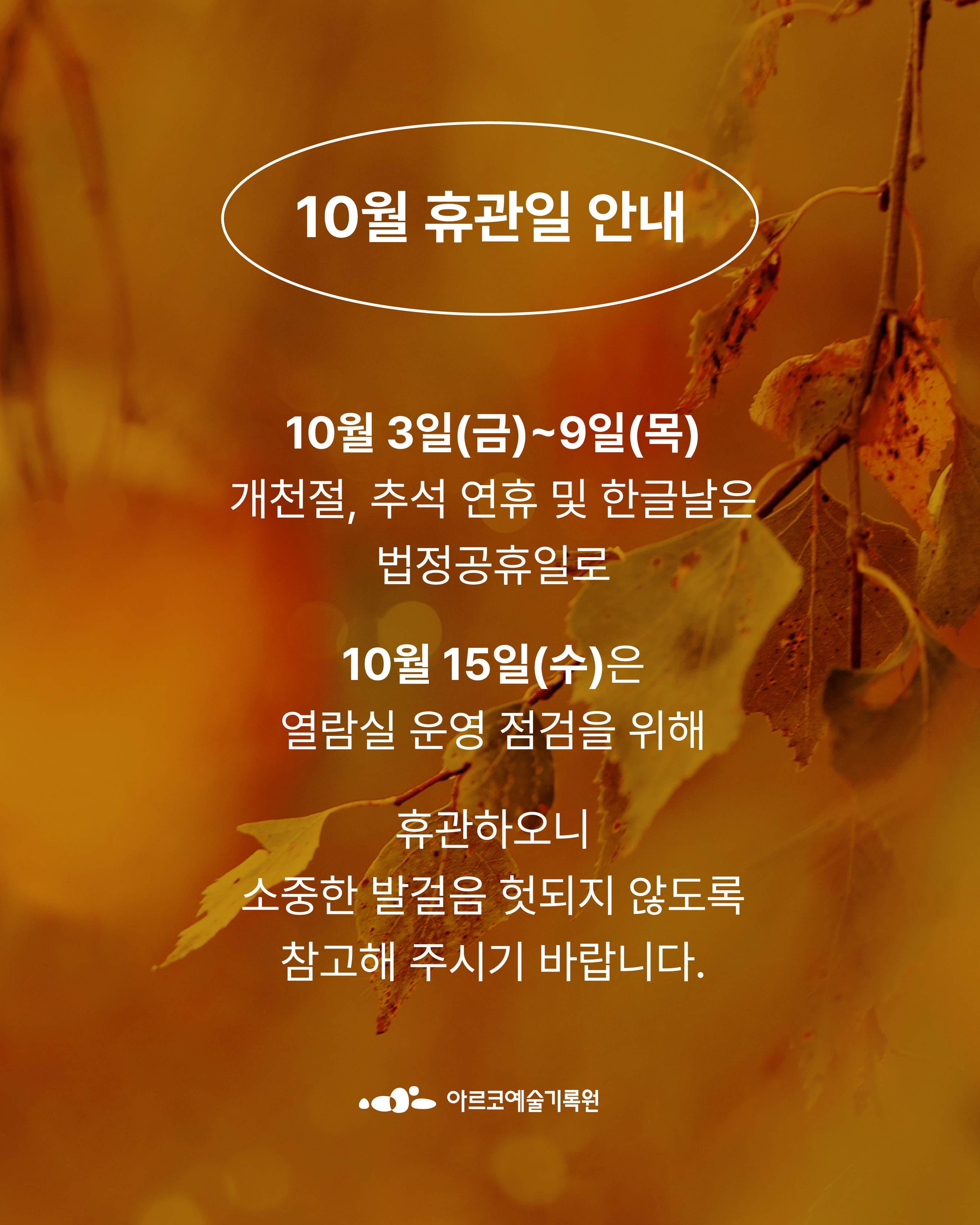10월 15일(수)은 열람실 운영 점검을 위해 휴관하오니